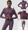 Матеріал Nylon / Elastane забезпечує м’яку компресію, добре тягнеться та зберігає форму навіть при інтенсивному русі.Топ акуратно підкреслює лінію плечей і спини, лосини з високою талією формують силует, а лонгслів додає комфорту та захисту в прохолодну погоду.